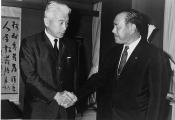 八田会長は(昭和43年頃)田中角栄自民党幹事長に急に呼ばれたことがあります。スポーツ使節団の代表として、北朝鮮に行くことが決まっていた八田会長に、八田さんの考え、行動は大変率直で支持するが、この度の北朝鮮訪問は、自民党の参議院議員として行くのだから、言動にはくれぐれも慎重にと、田中角栄幹事長が八田会長に言い渡しました。これには訳があります。後に田中角栄氏の七奉行と言われた、田中派大幹部の一人、奥田敬和氏は、早稲田大学レスリング部出身で、先輩にあたる八田会長の性格は良く知っており、北朝鮮通の自民党議員としては、八田会長が北朝鮮に行って問題を起こさなければよいが、と思っていたのです。田中幹事長と会った新人議員八田一朗は、堂々と一歩も引かぬ態度で臨み
